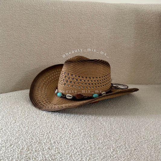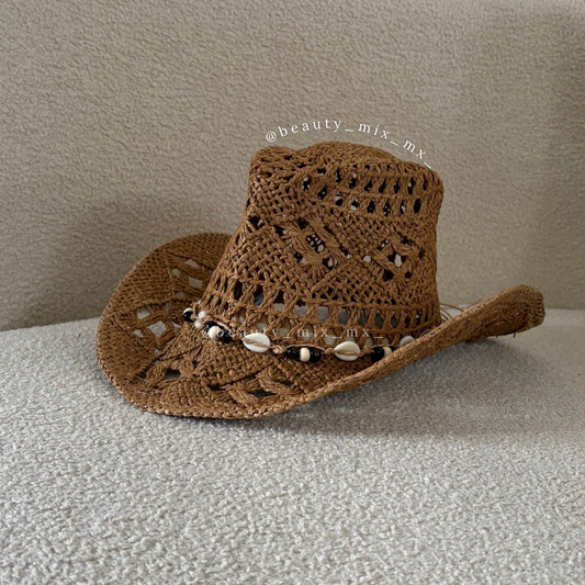 Sombrero Vaquero Playero Café con conchas (tipo paja)