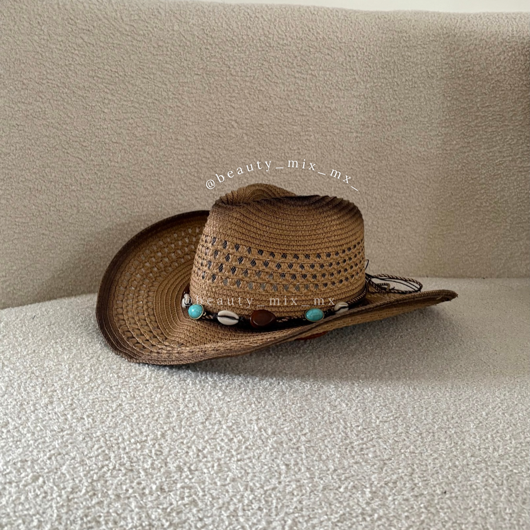 Sombrero Vaquero Playero Café Quemado con conchas (tipo paja)